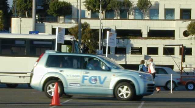Video Clip: (2 meg, 42 seconds) I made this riding in the Nissan FCV . The clip is brief and not good quality, but it will reinforce for some readers how normal some of these Fuel Cell Vehicle Rides seemed to be. Also, you can see that it's right-hand drive (for Japan), and the very cool LCD readout on the dash is visible.