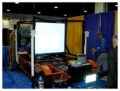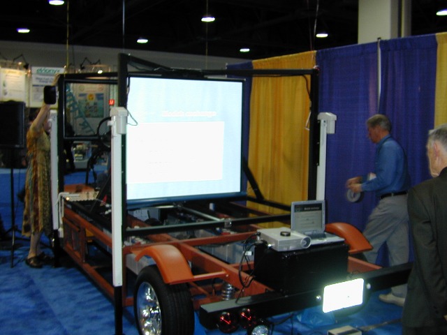 1. Discussion with John Deere Market Research Representative, (2:19, 1.06 MB) Her job is to assess and learn about the market for these concept and alt-fuel and high-tech vehicles. I passed on to her that I think John Deere, Caterpillar, et. al. warranty their diesel engines to work with B100 Biodiesel and other Biofuels, so that farmers can use their tractors, under warranty, with fuel that they have made for themselves. John Deere was perhaps the only company in their niche that I noticed at EVS20, and it was impressive to see their efforts.
