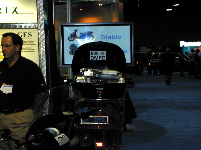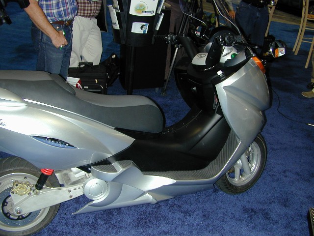 shot of the prototype Fuel-Cell-Battery Hybrid Scooter, where you can