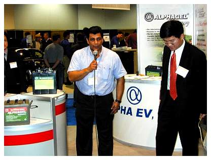 Sound File: The Alpha EV Press Conference (6 minutes, 1 megabyte, .mp3 format). The first speaker is the CEO (to the right, in the picture below), then Mike Soto (speaking in the picture below), then Q+A.