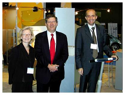 1. Mostly GEM part of Daimler Chrysler Press Conference Q+A (Rick Caspar of GEM speaking?) (mp3, 2.4 meg, 6:49) [Note: the sound quality unfortunately did not come out not as good during the part of the Press Conference where DaimlerChrysler's other alt-fuel relevant efforts were discussed, else I'd provide that as well.]